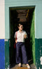 Pantalón elaborado en Lino con Algodón,  con elastico en la cintura que abarca desde una talla 24 en su talla SM a la talla 40 en su talla ML. Cuenta con bolsillos a los costados y con unas pequeñas aberturas en las bastas inferiores. 🐚